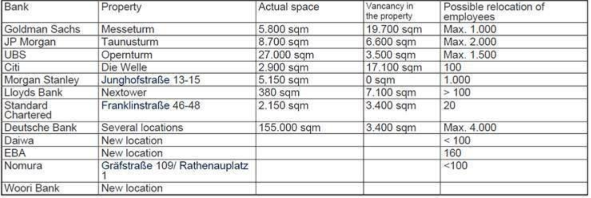 Here is a list of recent leases by banking institutions in Frankfurt, as well as Deutsche Bank’s occupancy profile (Source: NAI apollo).